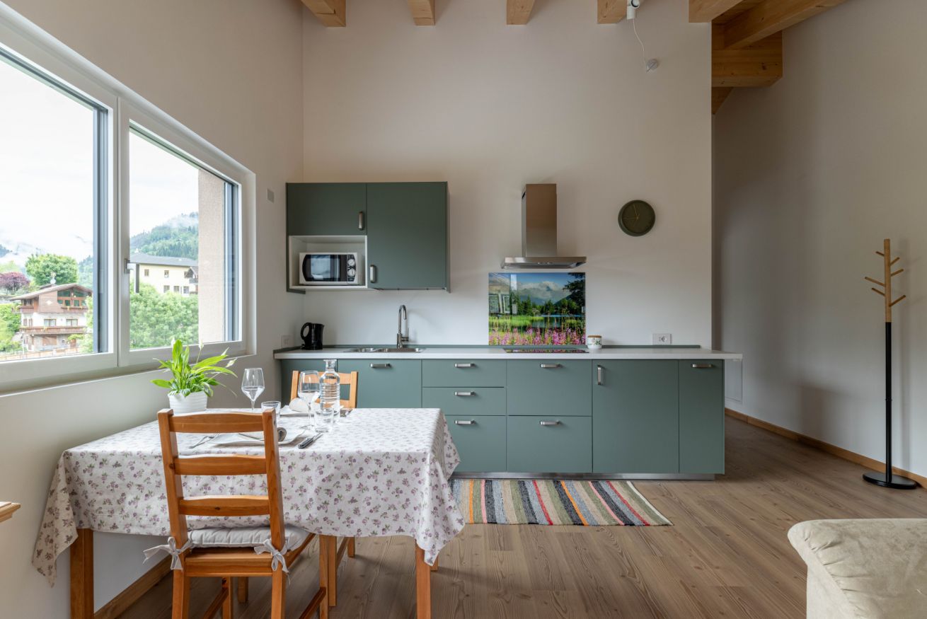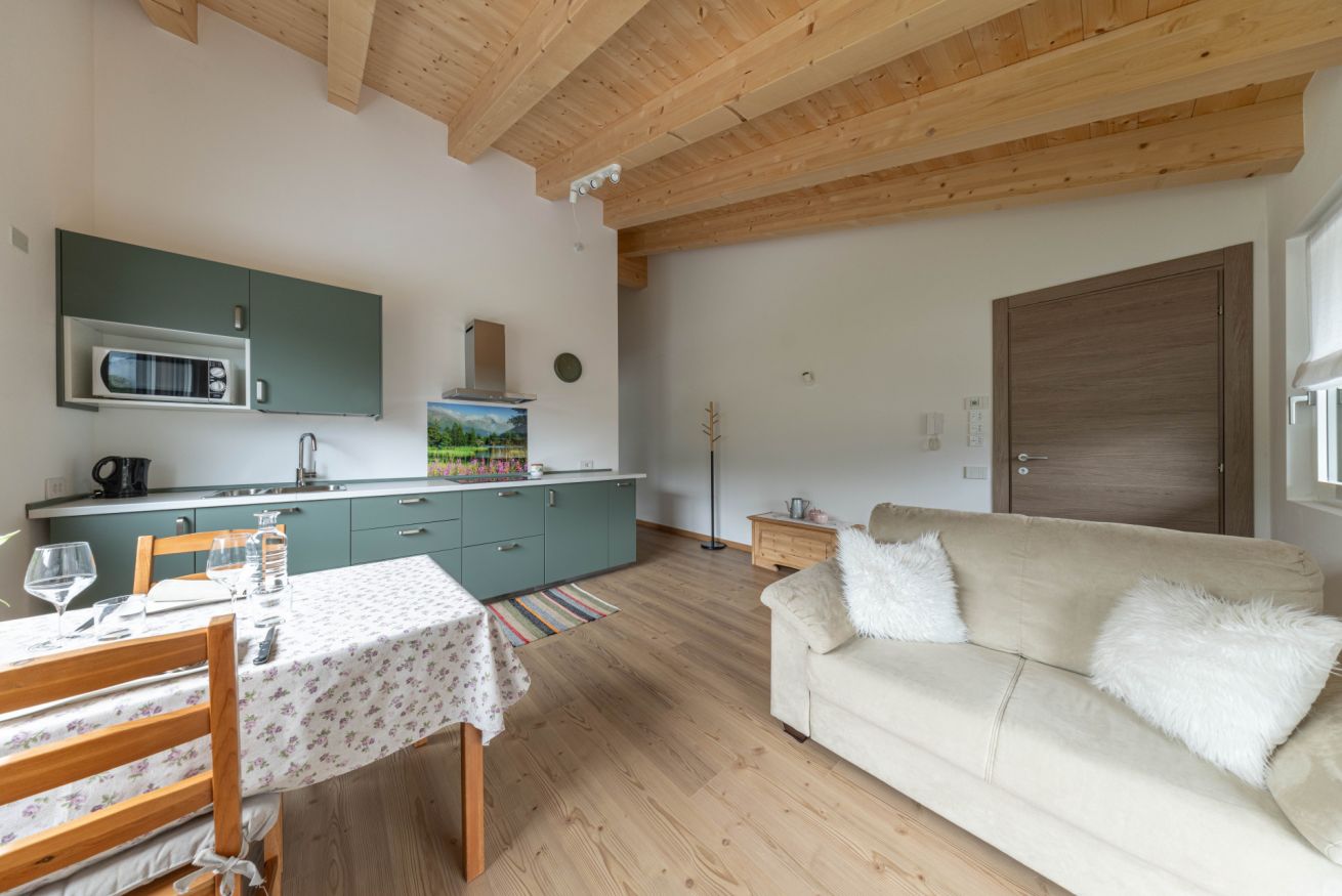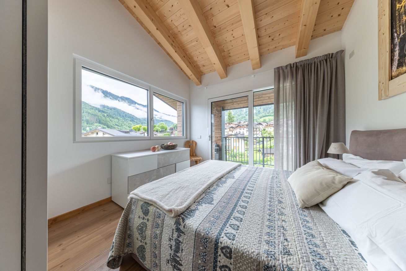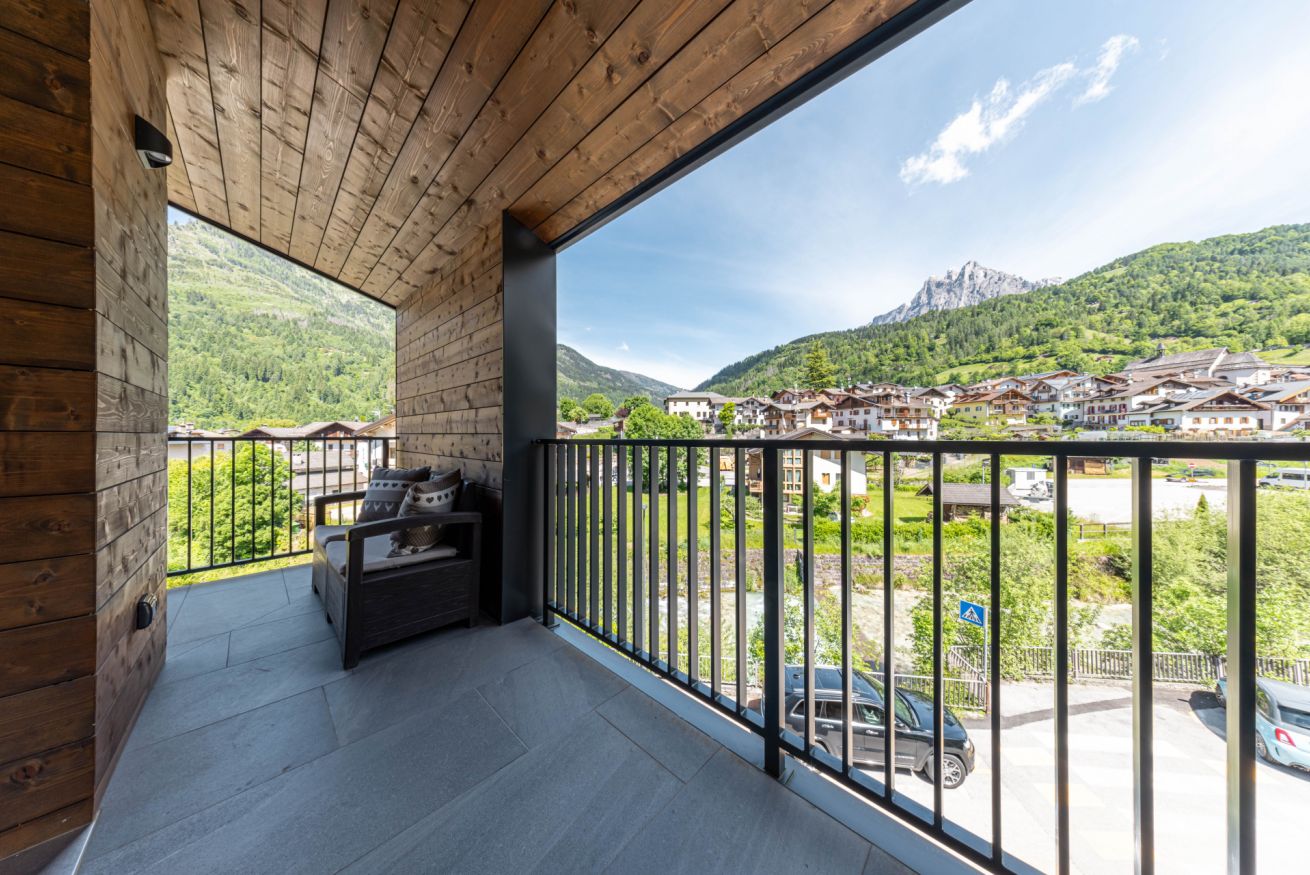 Questo appartamento di nuova costruzione può accogliere fino a 2 persone ed è perfetto per una coppia o una famiglia in cerca di tranquillità e comfort. Gli ambienti, curati nei minimi dettagli, si aprono su una spaziosa terrazza panoramica da cui si possono ammirare le Dolomiti, con le Pale di San Martino e il gruppo del Lagorai che incorniciano il paesaggio.