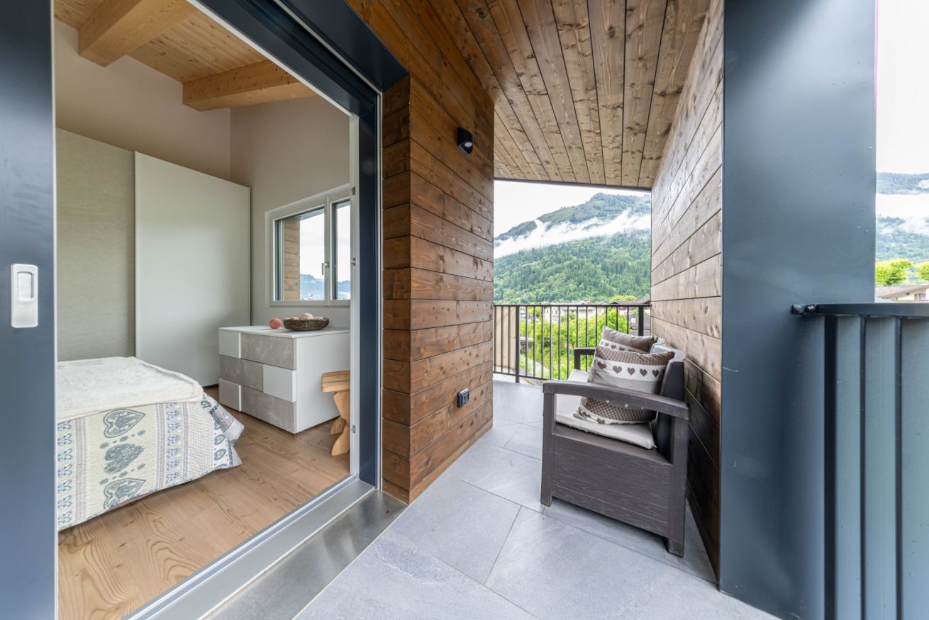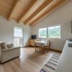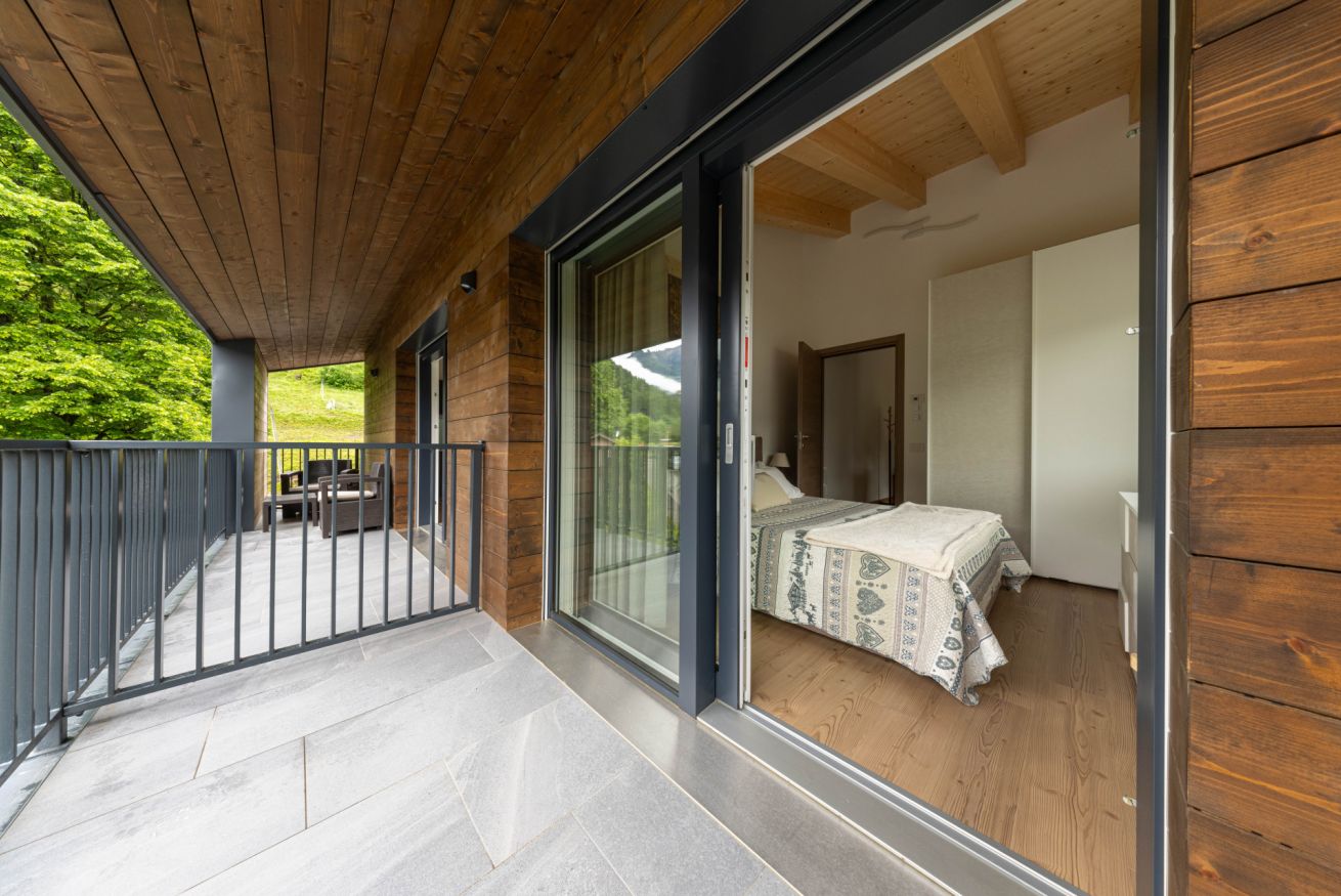 Il soggiorno con cucina a vista è ampio, moderno, e progettato per offrire momenti di convivialità e relax. L’arredamento è essenziale ma caldo, con tonalità naturali che richiamano l’ambiente circostante. La camera matrimoniale offre comfort e silenzio, con accesso diretto a una terrazza privata coperta, arredata con angolo relax: il luogo ideale per una colazione all’aperto o una pausa con vista. L’appartamento si trova in una zona tranquilla e molto soleggiata, ideale per chi cerca quiete e desidera prendersi una pausa dai ritmi quotidiani. Il centro del paese è facilmente raggiungibile a piedi o in auto, e sotto casa si trova un comodo parcheggio.